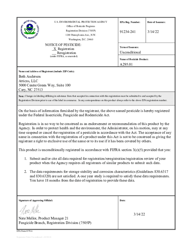 Get the free US EPA, Pesticide Product Label, A295.01,03/14/2022. Pesticide Product Label, A295.01