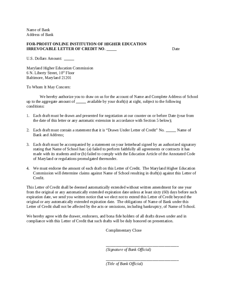 Instructions for the Online Registered For Profit Institutions LOC - mhec maryland form