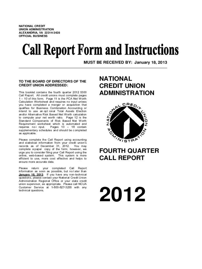 NATIONAL CREDIT UNION ADMINISTRATION ALEXANDRIA, VA 223143428 OFFICIAL BUSINESSES BE RECEIVED BY: January 18, 2013TO THE BOARD OF DIRECTORS OF THE CREDIT UNION ADDRESSED: This booklet contains the
