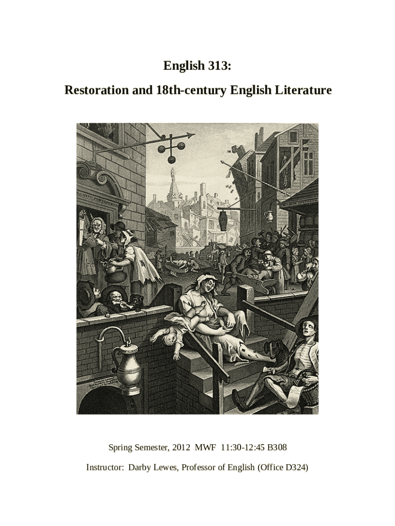 The english.indiana.edurestoration-l320L320: Restoration and Early Eighteenth-Century Literature is a writable document that should be submitted to the specific address to provide certain info. It has to be filled-out and signed, which may be done manually in hard copy, or by using a certain solution e. g. PDFfiller. This tool allows to fill out any PDF or Word document directly in your browser, customize it according to your requirements and put a legally-binding electronic signature. Right after completion, you can easily send the english.indiana.edurestoration-l320L320: Restoration and Early Eighteenth-Century Literature to the relevant person, or multiple individuals via email or fax. The editable template is printable as well from PDFfiller feature and options offered for printing out adjustment. Both in electronic and in hard copy, your form will have a clean and professional appearance. It's also possible to save it as the template to use later, so you don't need to create a new file from the beginning. You need just to edit the ready form.