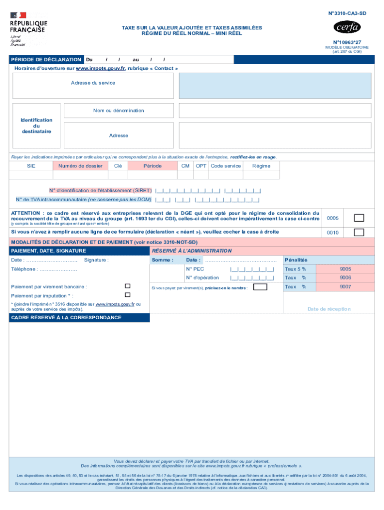 Get the free n3310-ca3-sd taxe sur la valeur ajoute et taxes assimiles rgime ...