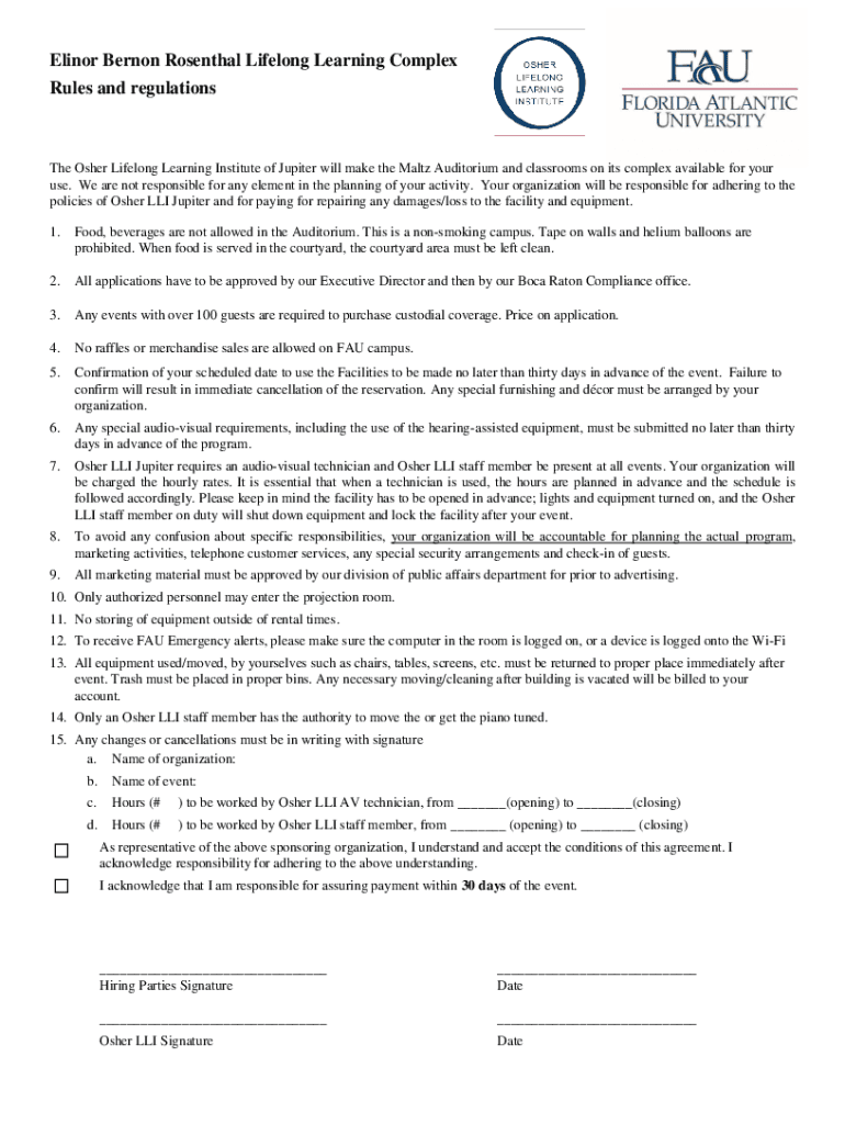 Elinor Vernon Rosenthal Lifelong Learning Complex Rules and regulations Other Lifelong Learning Institute of Jupiter will make the Malta Auditorium and classrooms on its complex available for your
