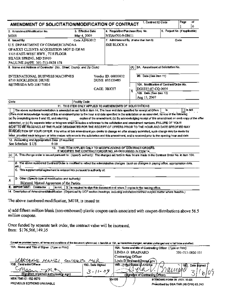 AMENDMENT OF SOLICITATION/MODIFICATION OF CONTRACT 2. Amendment/Modification No.13. Effective Date Mar 4, 2009 6. Issued By Code AJF60012 U.S. DEPARTMENT OF COMMERCEINOAA NEXT CLIENTS ACQUISITION