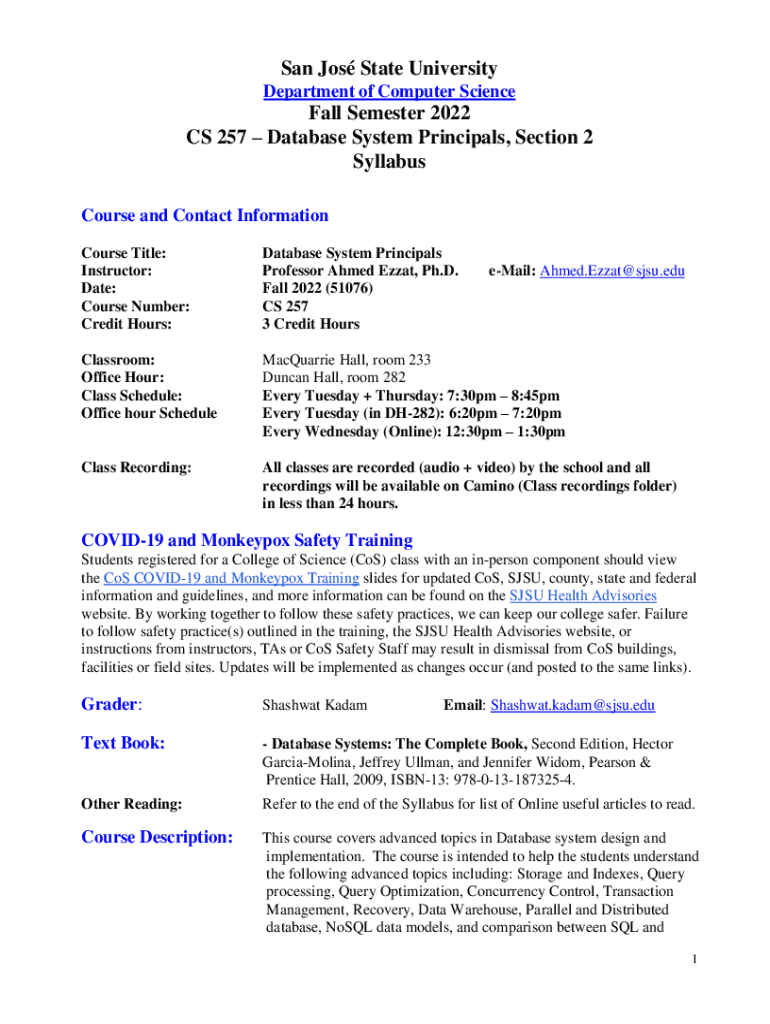 Get the free San Jos State University Department of Computer Science Fall Semester ...