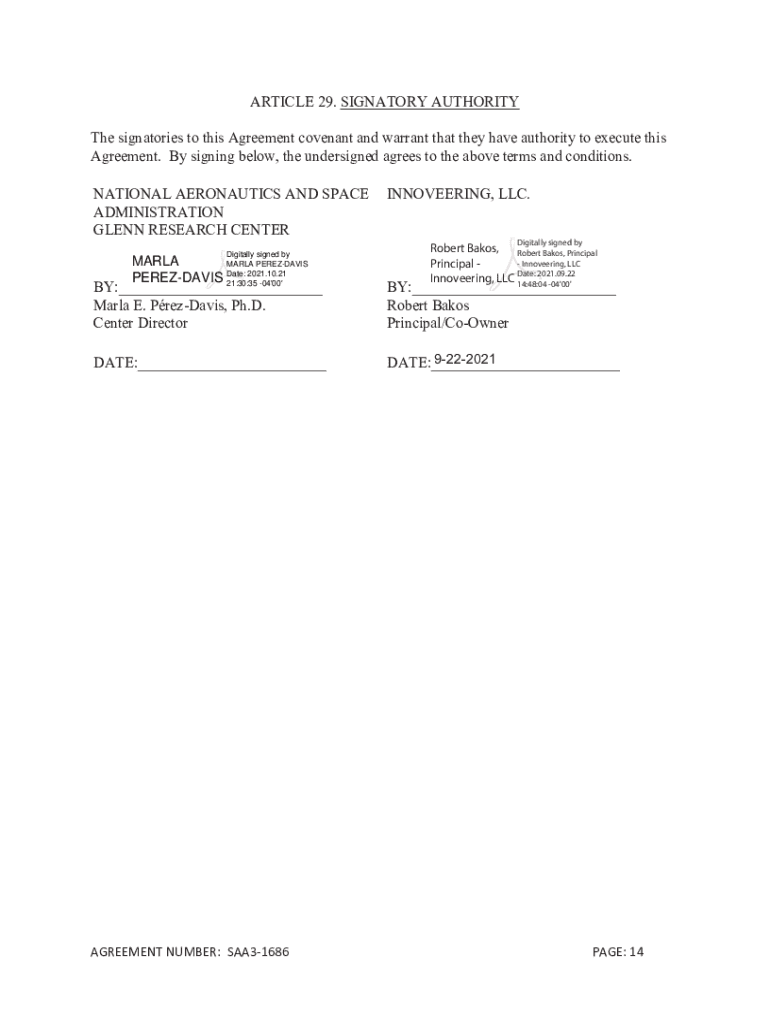 Get the free NONREIMBURSABLE SPACE ACT AGREEMENT (SAA3-1686) BETWEEN GLENN RESEARCH ...