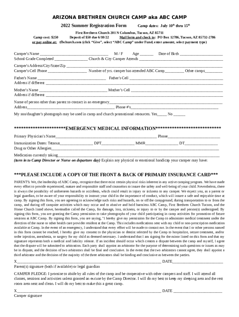 Template ARIZONA BRETHREN CHURCH CAMP aka ABC CAMP instructions