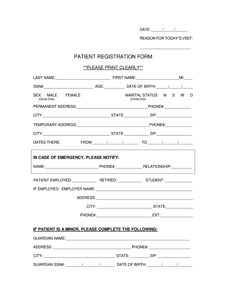 New patients, guardians of minors, and any individual seeking medical services must complete the Patient Registration Form to register with a healthcare provider.