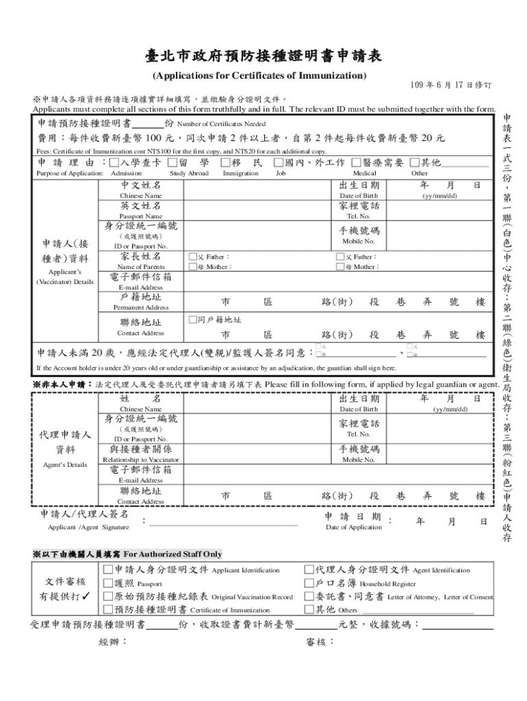 ! (Applications for Certificates of Immunization) 21: 7 28 ! Applicants must complete all sections of this form truthfully and in full. The relevant ID must be submitted together with the form. Applicants