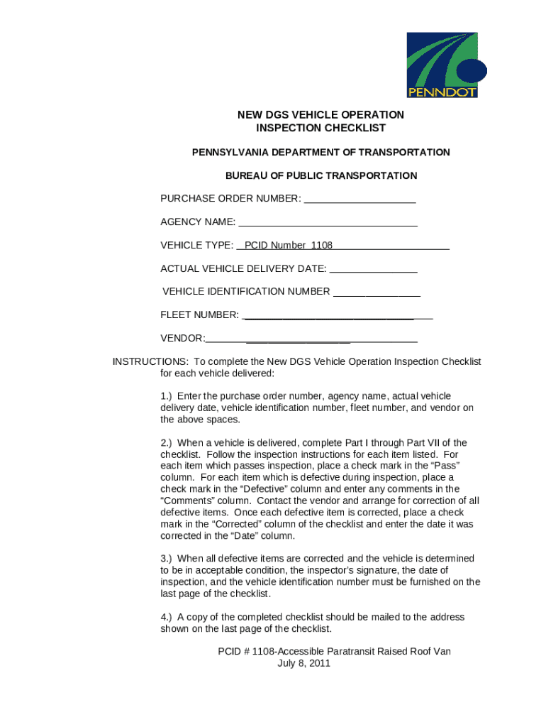 Instructions for the INSPECTION CHECKLIST form
