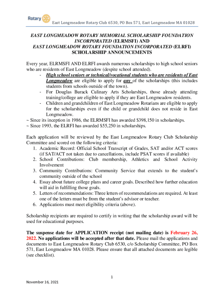Get the free east longmeadow rotary memorial scholarship foundation - NET