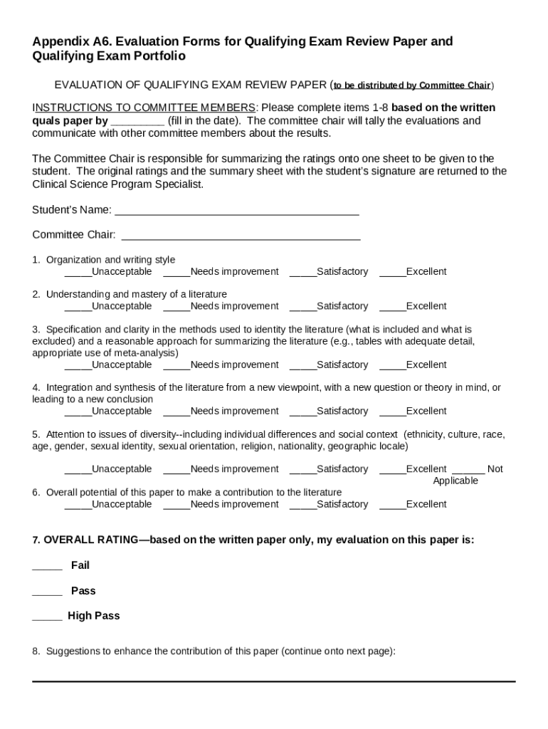 What is EVALUATION OF QUALIFYING EXAM REVIEW PAPER (to be distributed ... - dornsife usc Form?