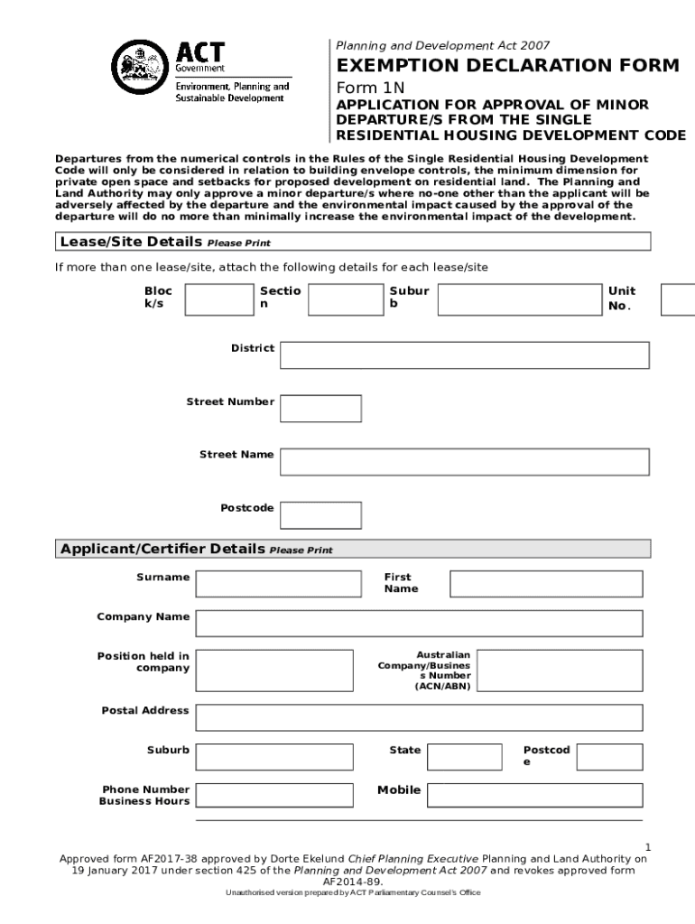 Instructions for the form www.legislation.act.gov.auDownloadFileafand Act EXEMPTION DECLARATION - ACT Legislation Register