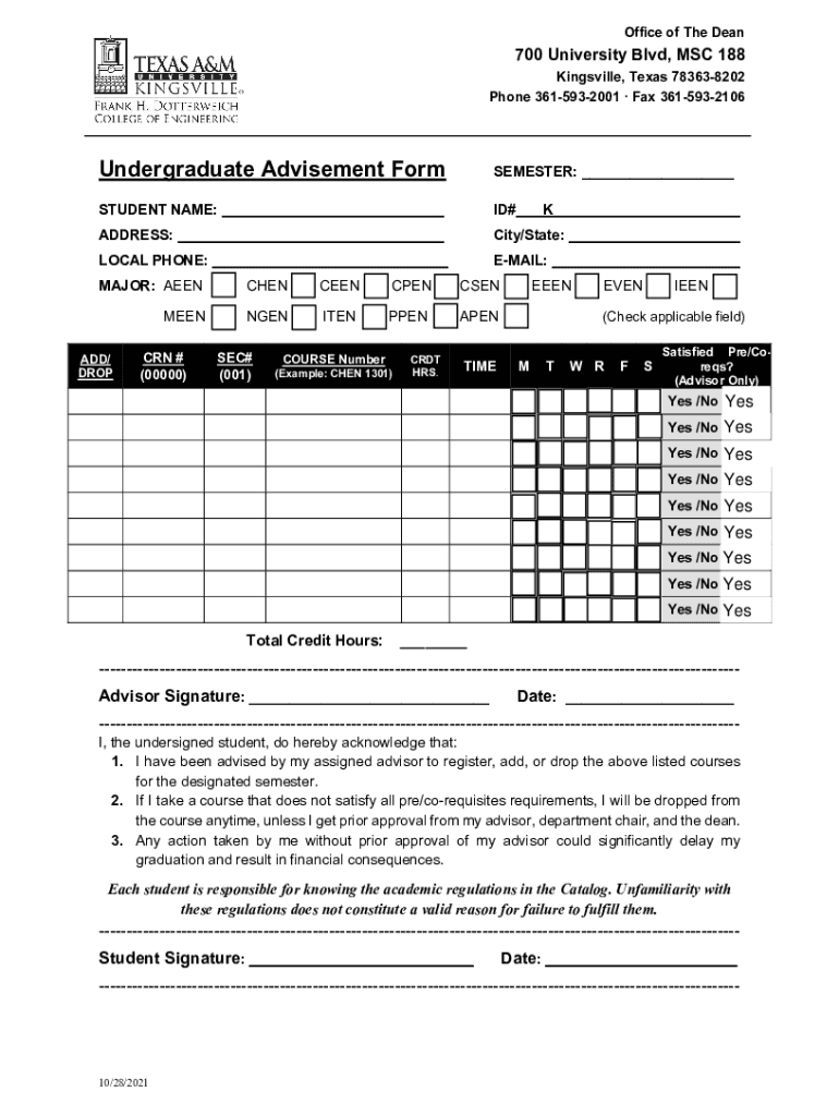 Phone 3615932001 Fax 3615932106Undergraduate Advisement FormSEMESTER: ___STUDENT NAME:ID#ADDRESS:City/State:LOCAL PHONE:EMAIL:MAJOR: