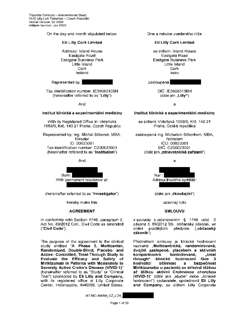 Tripartite Contract Interventional Study OUT Lilly LOA Template Czech RepublicGlobal Version: 02 2020 Affiliate Version: Jan 2020On the day and month stipulated below, One a mouse uvedenho né Eli