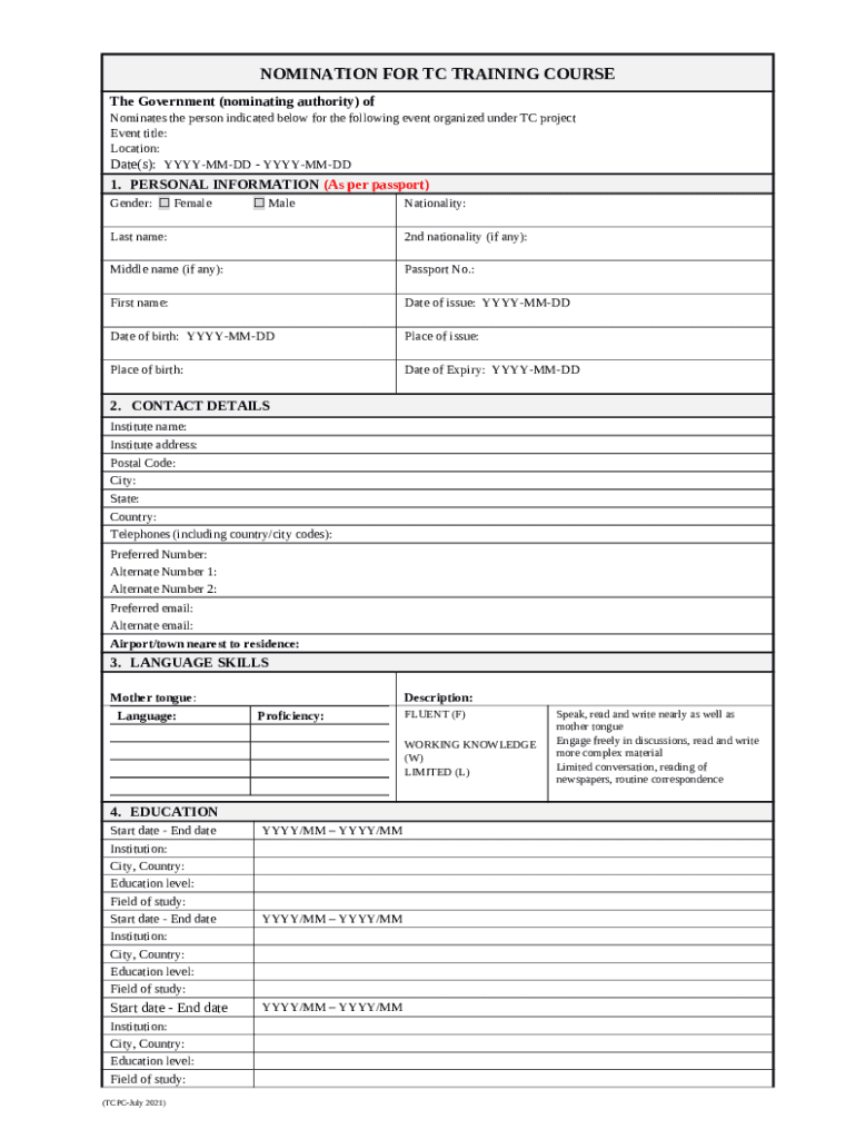 NOMINATION FOR TC TRAINING COURSE - International Atomic Energy Agency template instructions