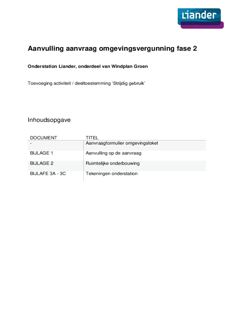 Get the free Onderstation Liander, onderdeel van Windplan Groen