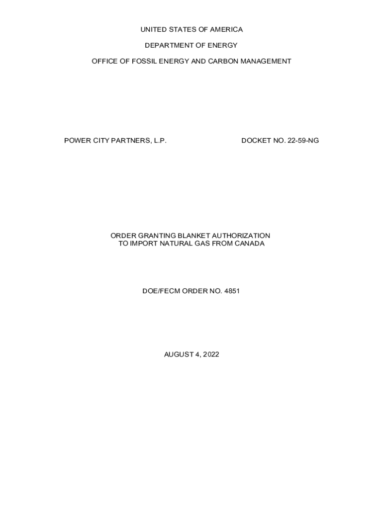 UNITED STATES OF AMERICA DEPARTMENT OF ENERGY OFFICE OF FOSSIL ENERGY AND CARBON MANAGEMENTPOWER CITY PARTNERS, L.P.DOCKET NO. 2259NGORDER GRANTING BLANKET AUTHORIZATION TO IMPORT NATURAL GAS FROM