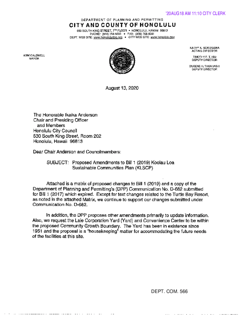 Get the free '20AUG18 AM 11:10 CITY CLERK DEPT. COM. 566