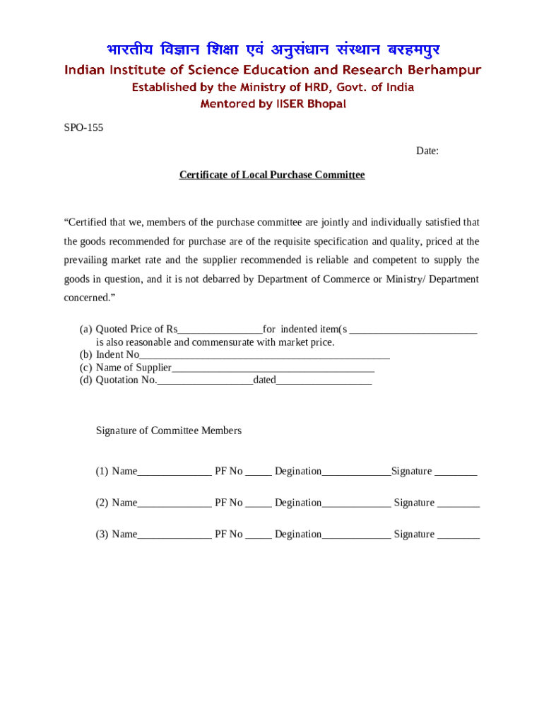 The PURCHASE OF GOODS (DOMESTIC) WITHOUT QUOTATION - Saha is a Word document that can be completed and signed for specific purpose. Next, it is furnished to the exact addressee to provide some details of any kinds. The completion and signing is possible manually in hard copy or using a trusted solution like PDFfiller. Such tools help to complete any PDF or Word file without printing them out. It also lets you edit its appearance according to your requirements and put an official legal digital signature. Once done, the user sends the PURCHASE OF GOODS (DOMESTIC) WITHOUT QUOTATION - Saha to the respective recipient or several recipients by email or fax. PDFfiller provides a feature and options that make your Word template printable. It offers different options when printing out. It does no matter how you will distribute a form after filling it out - in hard copy or by email - it will always look well-designed and clear. To not to create a new editable template from the beginning all the time, make the original document as a template. After that, you will have a rewritable sample.