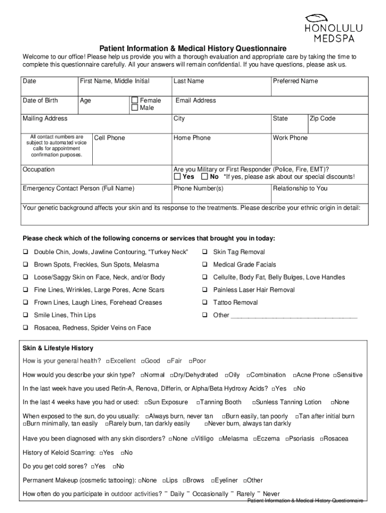 Get the free Patient Information & Medical History Questionnaire