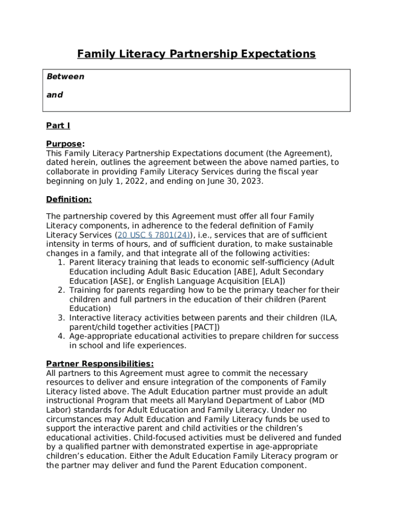 The Family Literacy Partnership Expectations is a document required to be submitted to the relevant address in order to provide some information. It must be filled-out and signed, which can be done manually in hard copy, or with the help of a certain solution like PDFfiller. This tool lets you complete any PDF or Word document directly from your browser (no software requred), customize it according to your needs and put a legally-binding e-signature. Once after completion, the user can easily send the Family Literacy Partnership Expectations to the appropriate receiver, or multiple individuals via email or fax. The editable template is printable too because of PDFfiller feature and options presented for printing out adjustment. Both in electronic and physical appearance, your form will have got neat and professional appearance. You may also save it as the template for further use, without creating a new file again. You need just to edit the ready template.