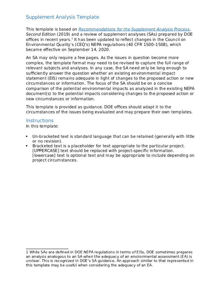 How to fill Supplement Analysis Short - Department of Energy word template