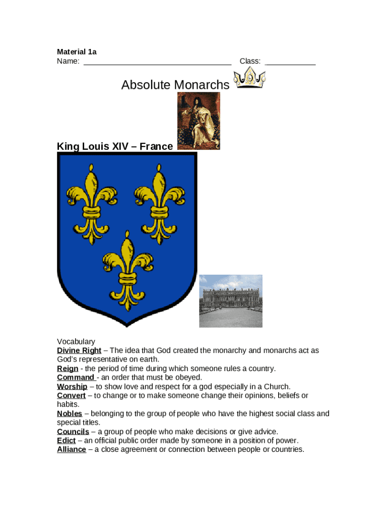 Instructions for the form What Made King Louis XIV an Absolute Monarch? - The Classroom