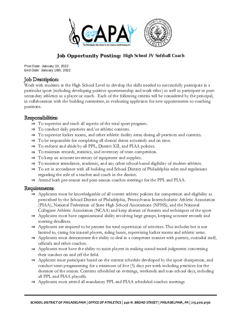 Template Job Opportunity Posting: High School JV Softball Coach instructions