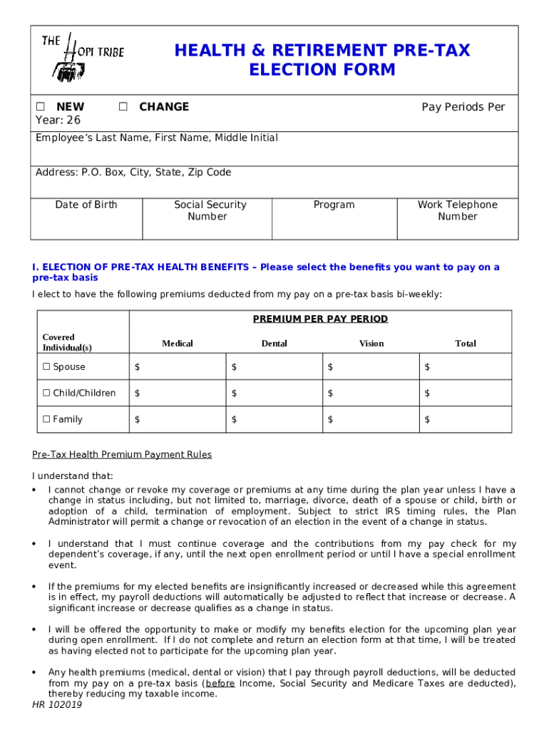 How to fill out Health Retirement Pre-Tax Election - The Hopi Tribe