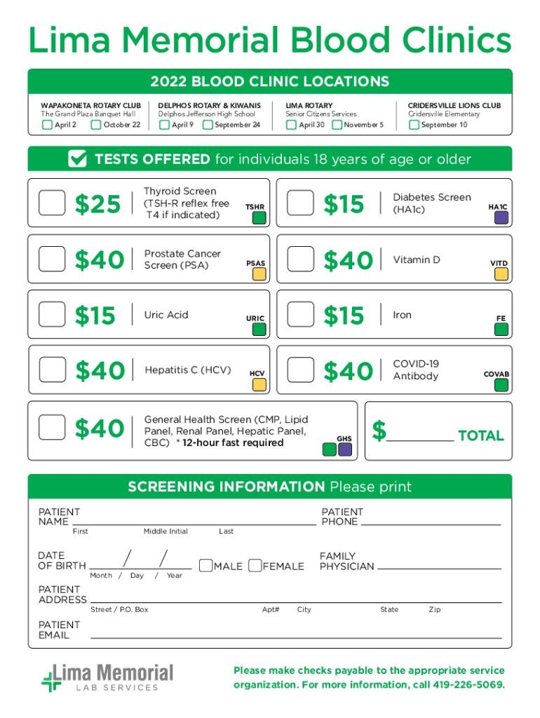 Lima Memorial Blood Clinics 2022 BLOOD CLINIC LOCATIONS WAPAKONETA ROTARY CLUB The Grand Plaza Banquet Hall April 2 October 22DELPHOS ROTARY & KIWANIS Delphi Jefferson High School April 9 September