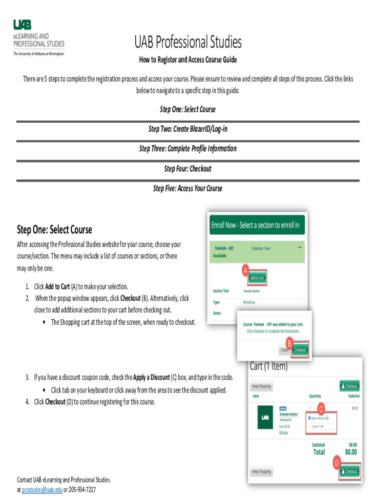UAB Professional Studies How to Register and Access Course Guide There are 5 steps to complete the registration process and access your course. Please ensure to review and complete all steps of this