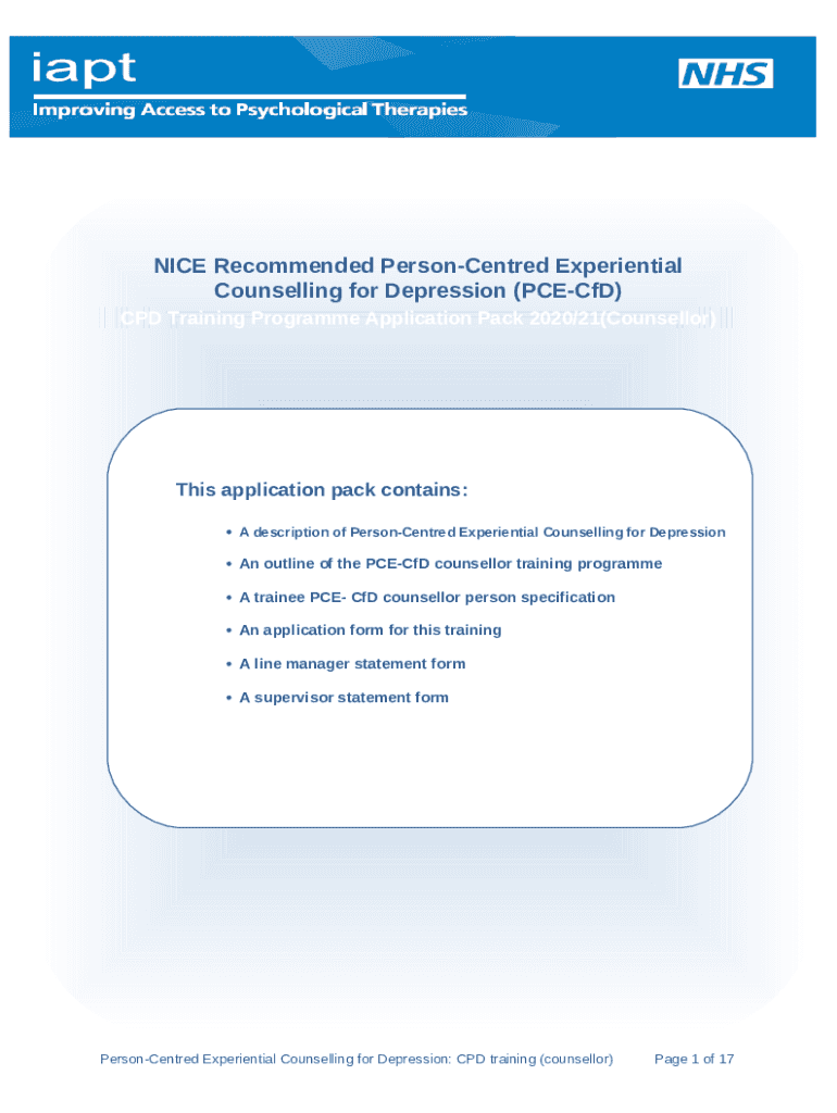 What is NICE Recommended Person Centred Experiential Counselling for ... Form?