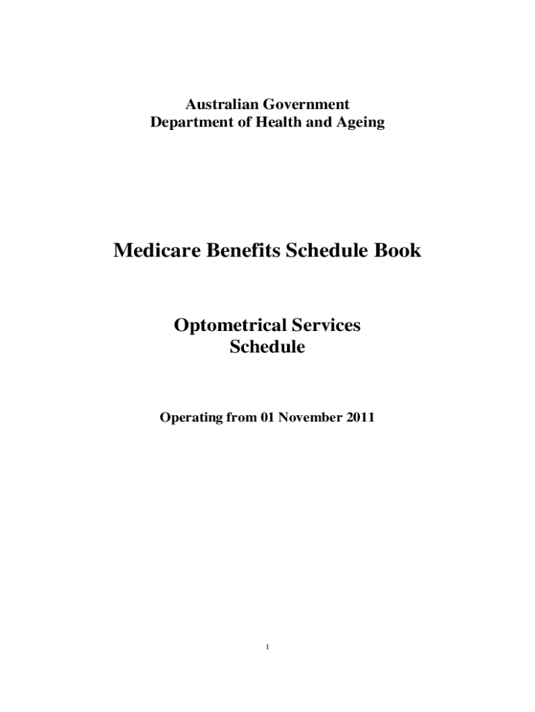 Australian Government Department of Health and AgeingMedicare Benefits Schedule BookOptometrical Services ScheduleOperating from 01 November 20111 Commonwealth of Australia 2011 Online ISBN: 9781742415789