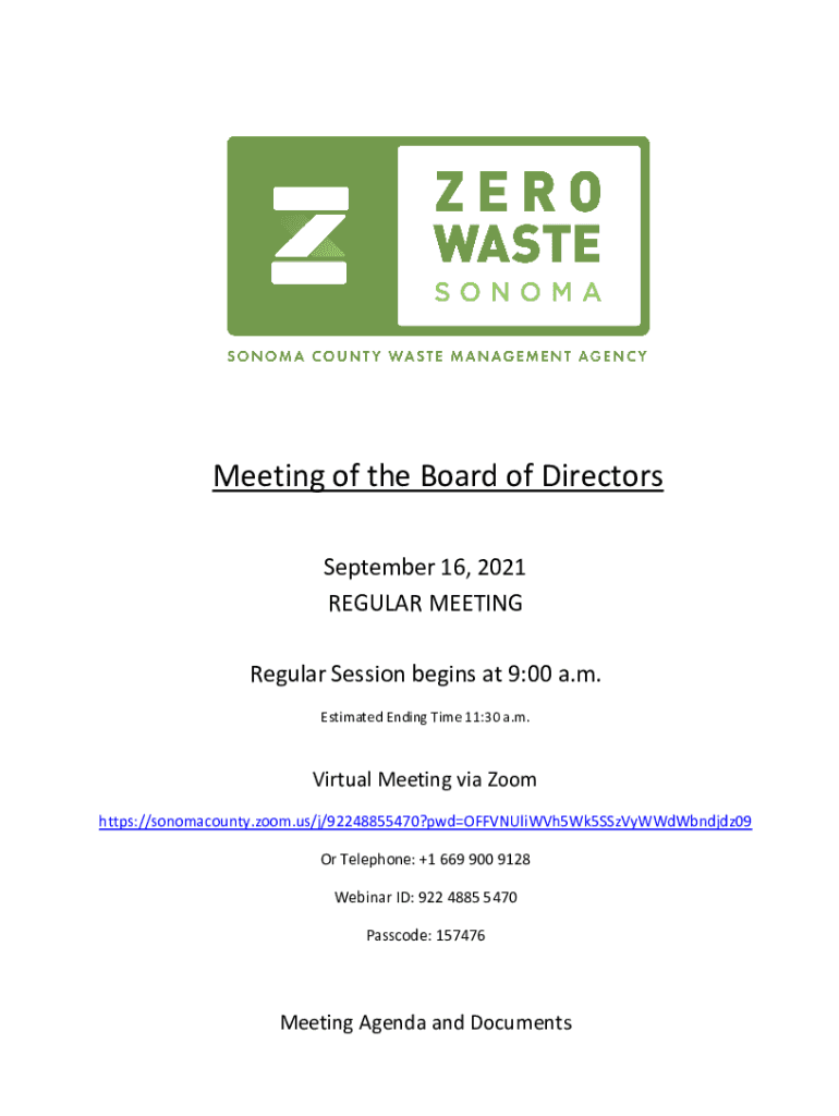 Get the free Agenda Packet for the September 16, 2021 Zero Waste Sonoma ...