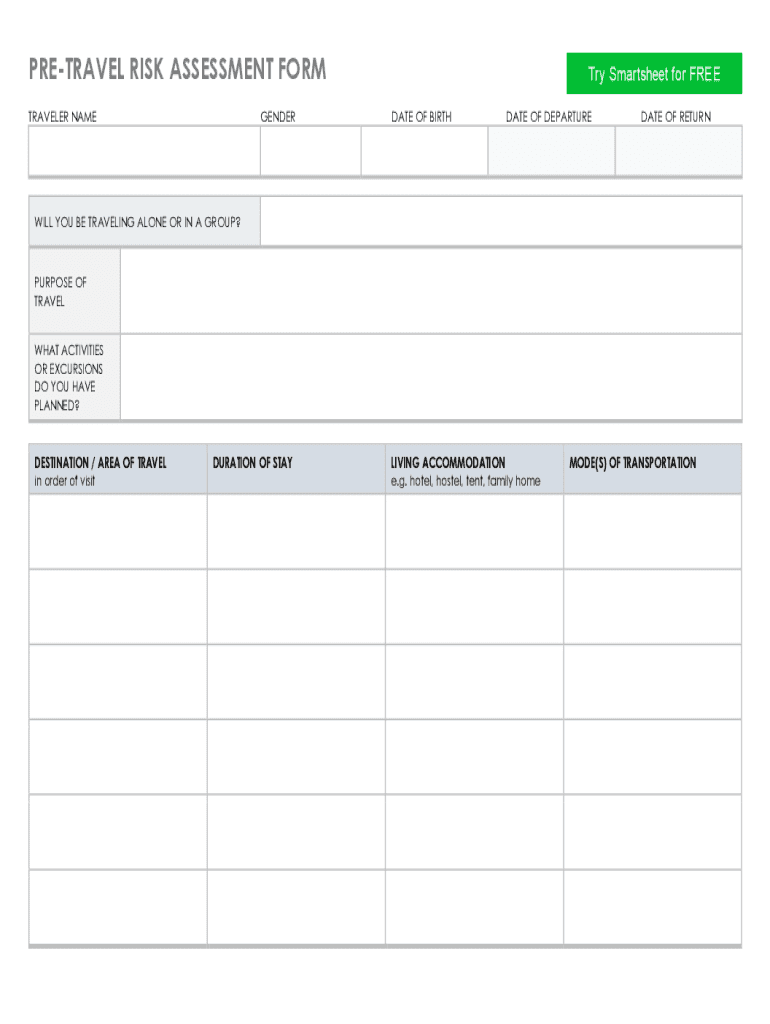 Get the free PRE-TRAVEL RISK ASSESSMENT FORM - Smartsheet
