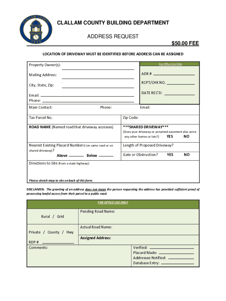 Get the free ADDRESS REQUEST $50.00 FEE - Clallam County, Washington