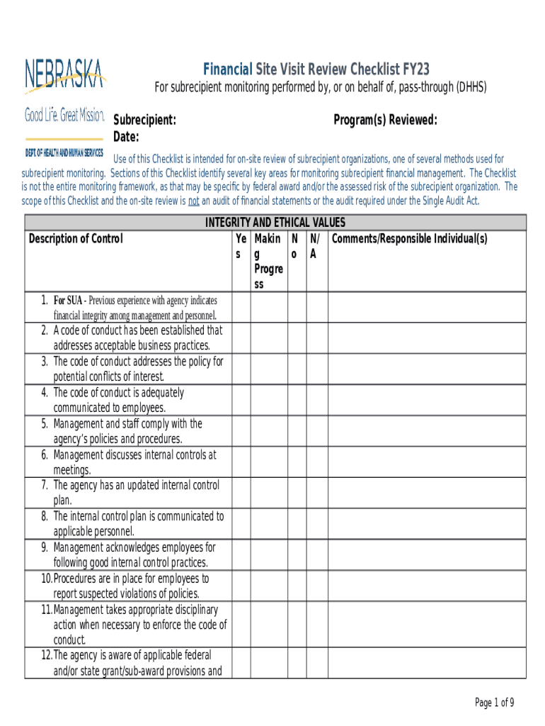 Financial Site Visit Review - Nebraska Department of ... - dhhs ne template instructions