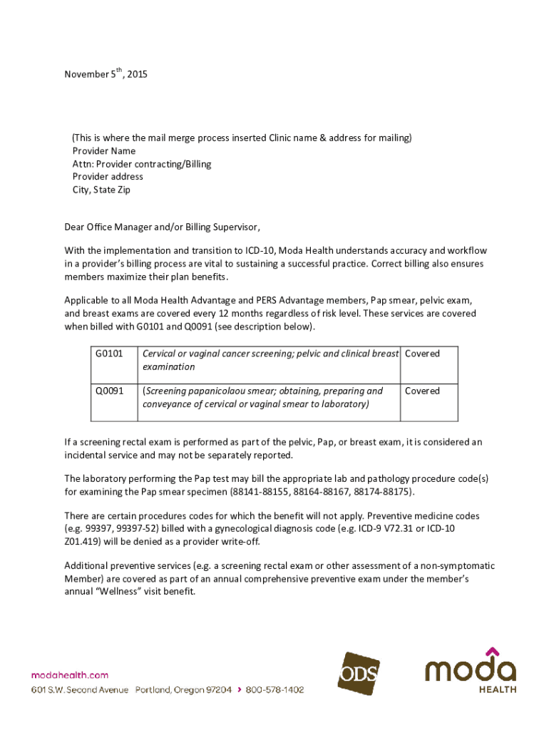 November 5th, 2015(This is where the mail merge process inserted Clinic name & address for mailing) Provider Name Attn: Provider contracting/Billing Provider address City, State Zip Dear Office Manager