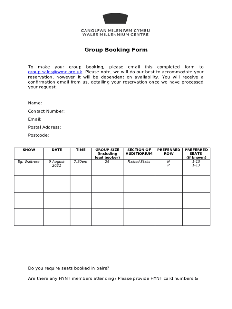 To make your group booking, please email this completed to group word template: frequently asked questions