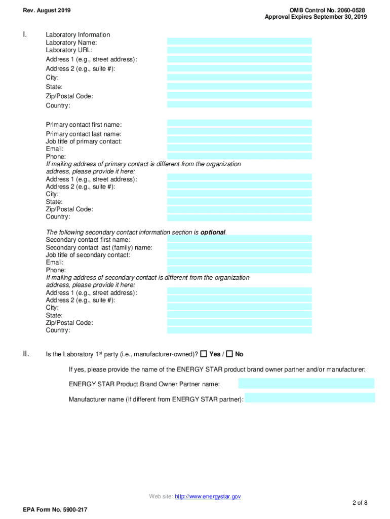 Rev. August 2019OMB Control No. 20600528 Approval Expires September 30, 2019United StatesENVIRONMENTAL PROTECTION AGENCY Washington, DC 20460Office of Atmospheric ProgramsApplication for Recognition