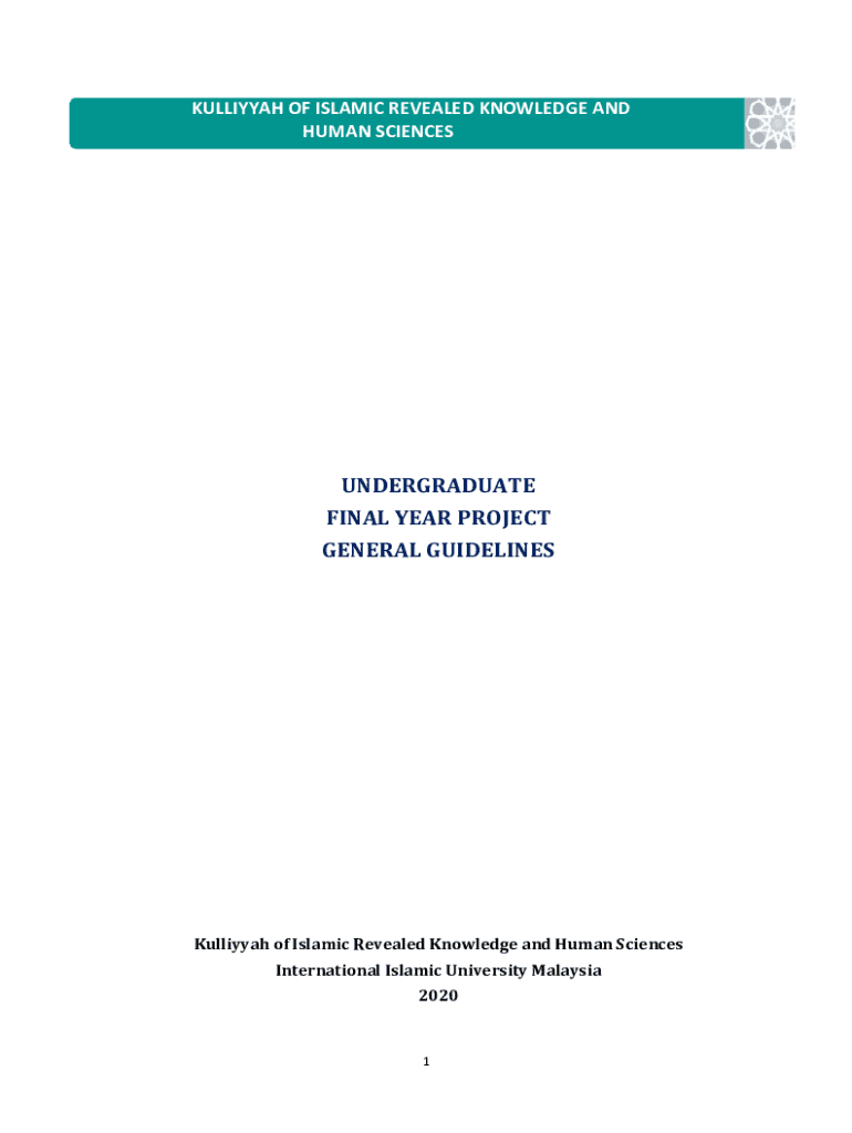 KULLIYYAH OF ISLAMIC REVEALED KNOWLEDGE INHUMAN SCIENCESUNDERGRADUATEFINAL YEAR PROJECTGENERAL GUIDELINESKulliyyah of Islamic Revealed Knowledge and Human SciencesInternational Islamic University