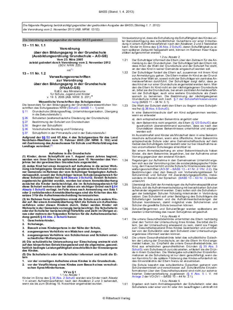 die Verordnung com 2. November 2012 (ABL. NRW. 12/12). Die Verordnung were Wegener