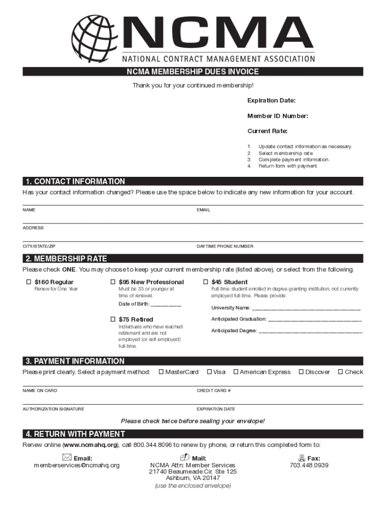 All members of the National Contract Management Association are required to file ncma membership dues invoice.