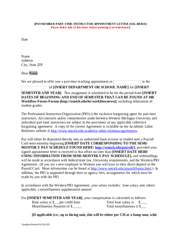 - Find the NON-PIO MEMBER PART-TIME INSTRUCTOR - Western Michigan University form in PDFfiller’s catalogue.