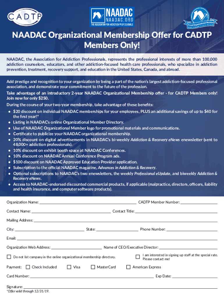 Naadac Organizational Membership Offer is not the form you're looking for?Search for another form here.