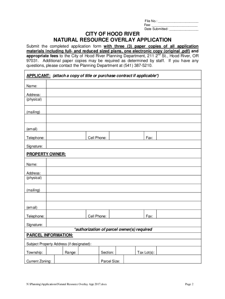 Get the free natural-resource-overlay-app-2018fillable.pdf - city of hood river