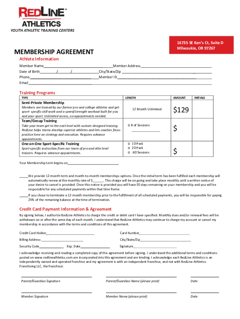 16735 SE Kens Ct, Suite D Milwaukee, OR 97267MEMBERSHIP AGREEMENT Athlete InformationMember Name ___ Member Address ___ Date of Birth ___ /___ /___ City/State/Zip ___ Phone ___ Member ID ___ Email