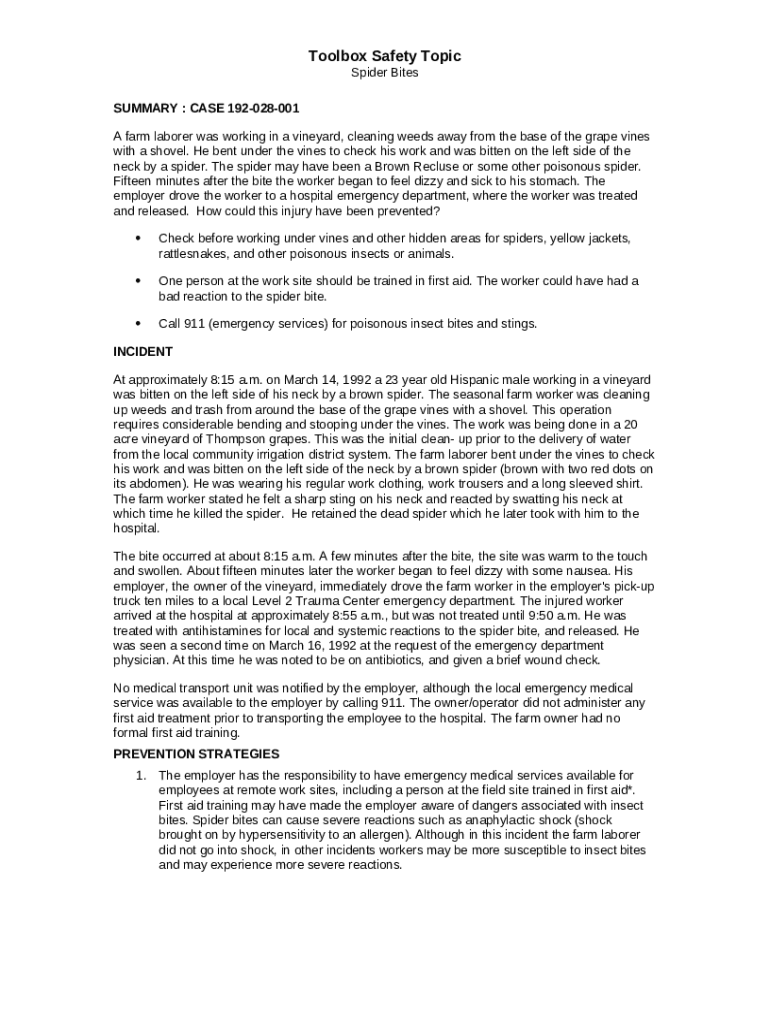 Template NASD - Poisonous Spider Bites Vineyard Worker (Summary) instructions