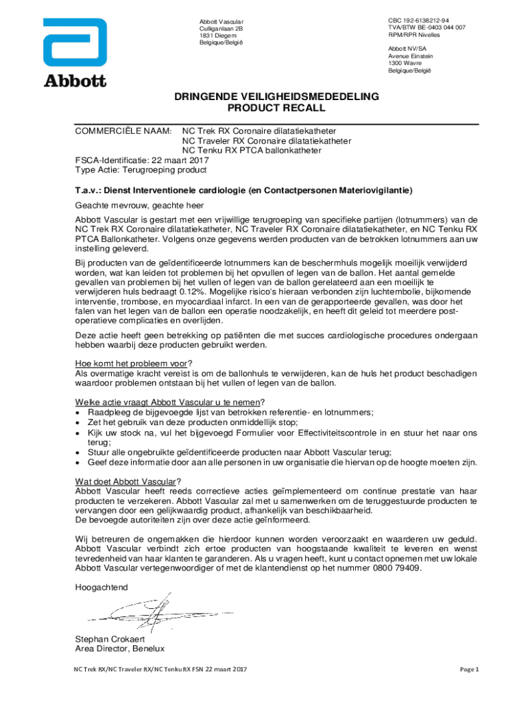 Dringende Veiligheidsmededeling Product Recall is not the form you're looking for?Search for another form here.