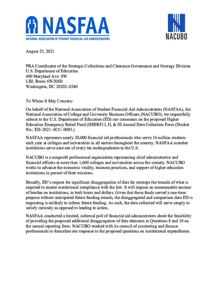 August 23, 2021, PRA Coordinator of the Strategic Collections and Clearance Governance and Strategy Division U.S. Department of Education 400 Maryland Ave. SW LBJ, Room 6W208D Washington, DC 202028240